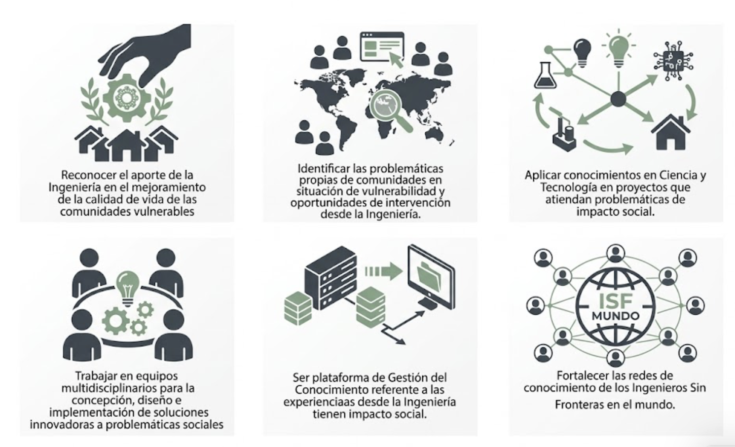 Ingenieros Sin Fronteras Colombia (ISFCOL) está conformado por profesores, estudiantes y graduados de la Universidad de los Andes y la Corporación Universitaria Minuto de Dios, cuyo propósito es mejorar la calidad de vida de comunidades del país en condición de vulnerabilidad mediante proyectos de ingeniería que sean sostenibles, económica y culturalmente viables, y que permitan desarrollar en los estudiantes e involucrados una conciencia social y medioambiental.